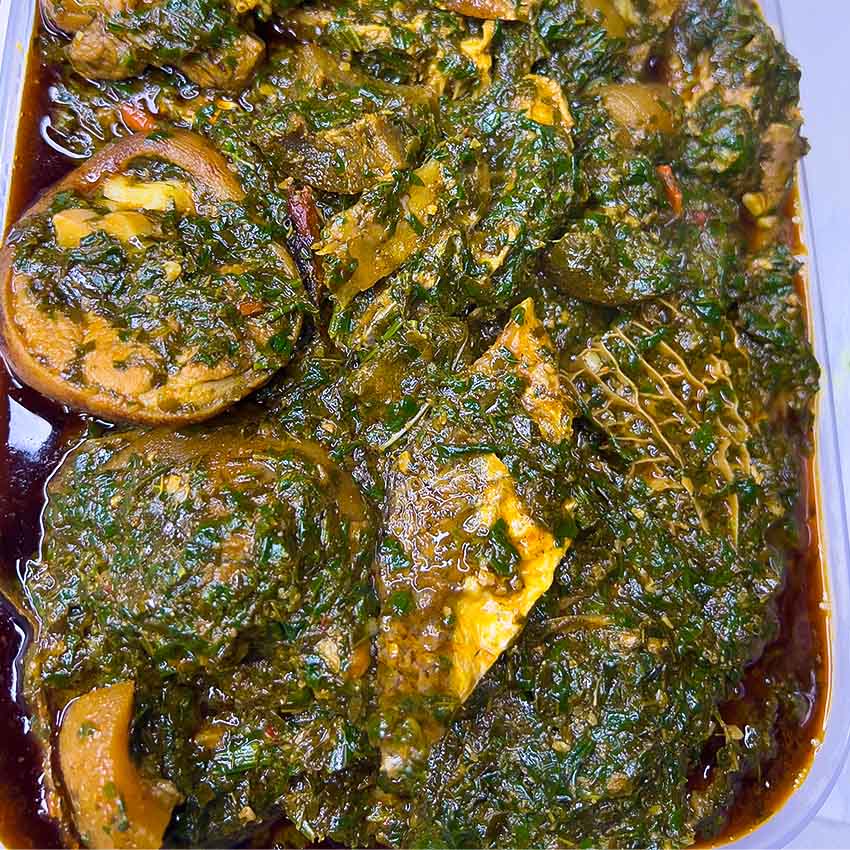 + Free ShippingAfang soup is rich, bold and loaded with flavour. It’s made with finely sliced afang and waterleaf, cooked in palm oil with well-seasoned meats, stockfish and periwinkle.